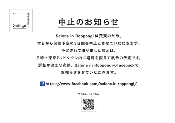 Salone in RoppongiのRoccaイベントですが、悪天候が予想されるため、残念ながら中止といたしました。