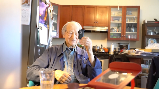手回し編集機を見せてくれたあと、居間に戻ったジョナスは、ポケットから小さなカメラを取り出しました。ニコンのコンパクトなムービーカメラ。