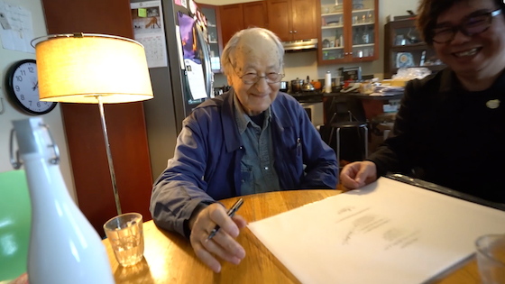 このあと、トレーシングペーパーの作品にサインしてもらいました。