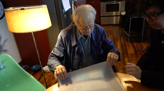 「ルルにフィルムを編集する様子を見せてほしい」というお願いにこたえて、仕事場に案内してくれるジョナス。