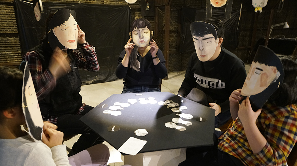 夜のターンは、「ねむりの顔」おめんをかぶってプレイ。