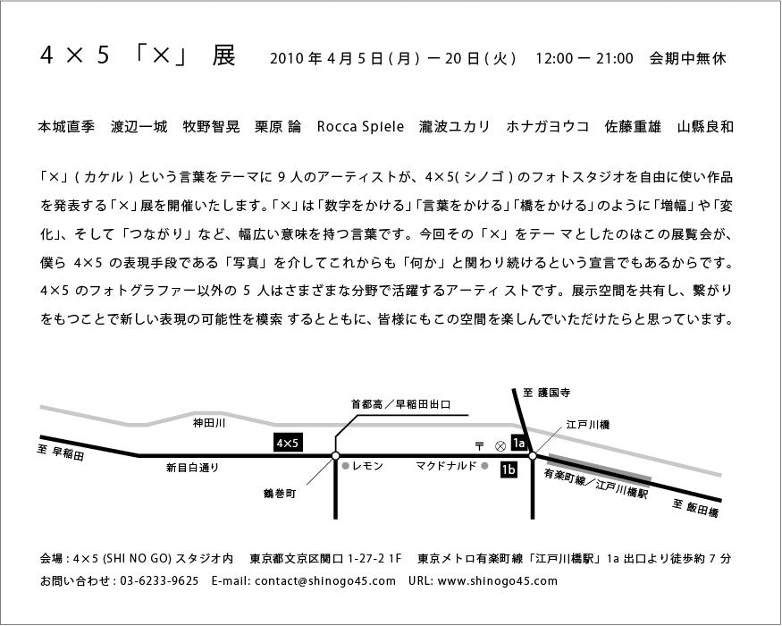 詳しい案内は4×5オフィシャルサイトに近々アップされる予定です。