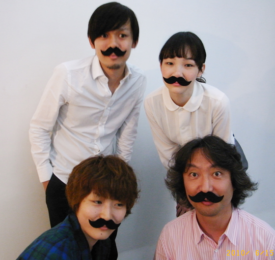 撮られるほうも撮るほうも、メンバーみんなが、トゥルーリ・オカモチェクにならいヒゲをつけてます〜。