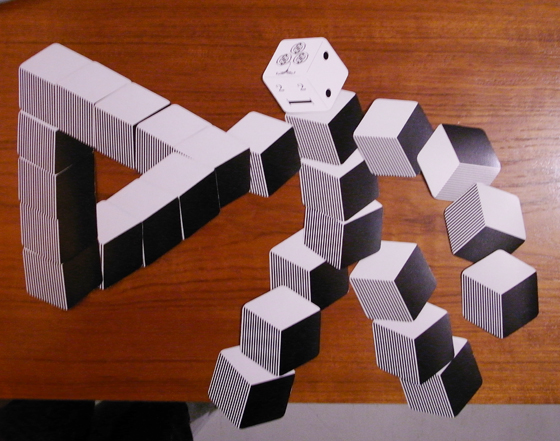 楽しげな表情と、立体が積み重なっていく様子の両方を捉えます。