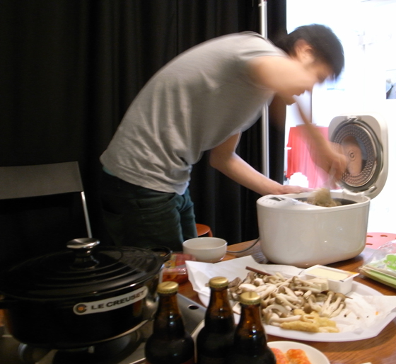 そして閉場後は、たきこみご飯とキムチ鍋をいただいてしまいました。