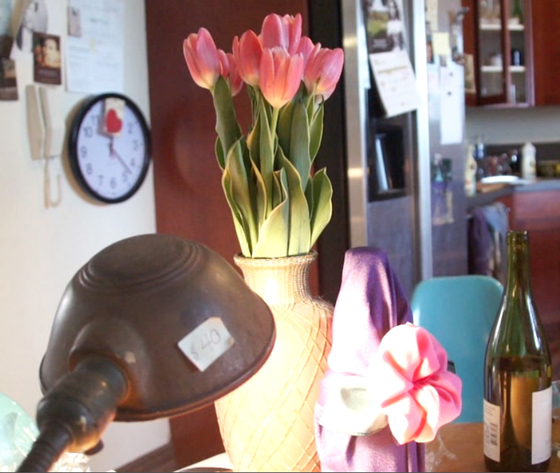 プレゼントの花を花瓶にさすジョナス。