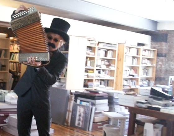 吹き終わると、他のラッパ、そしてアコーディオンを演奏。