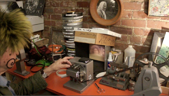 「ルルにフィルムを編集する様子を見せてほしい」というお願いにこたえて、仕事場に案内してくれるジョナス。