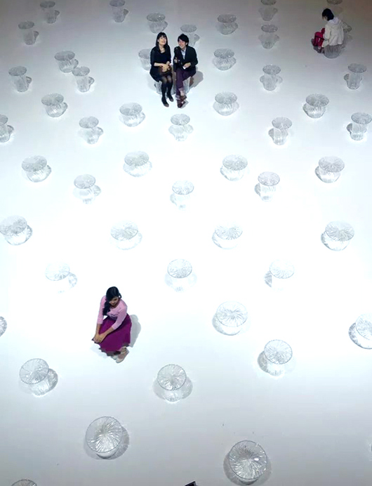 吉岡徳仁さんのKartelの新作SPARKLEが並んでいるアトリウムで