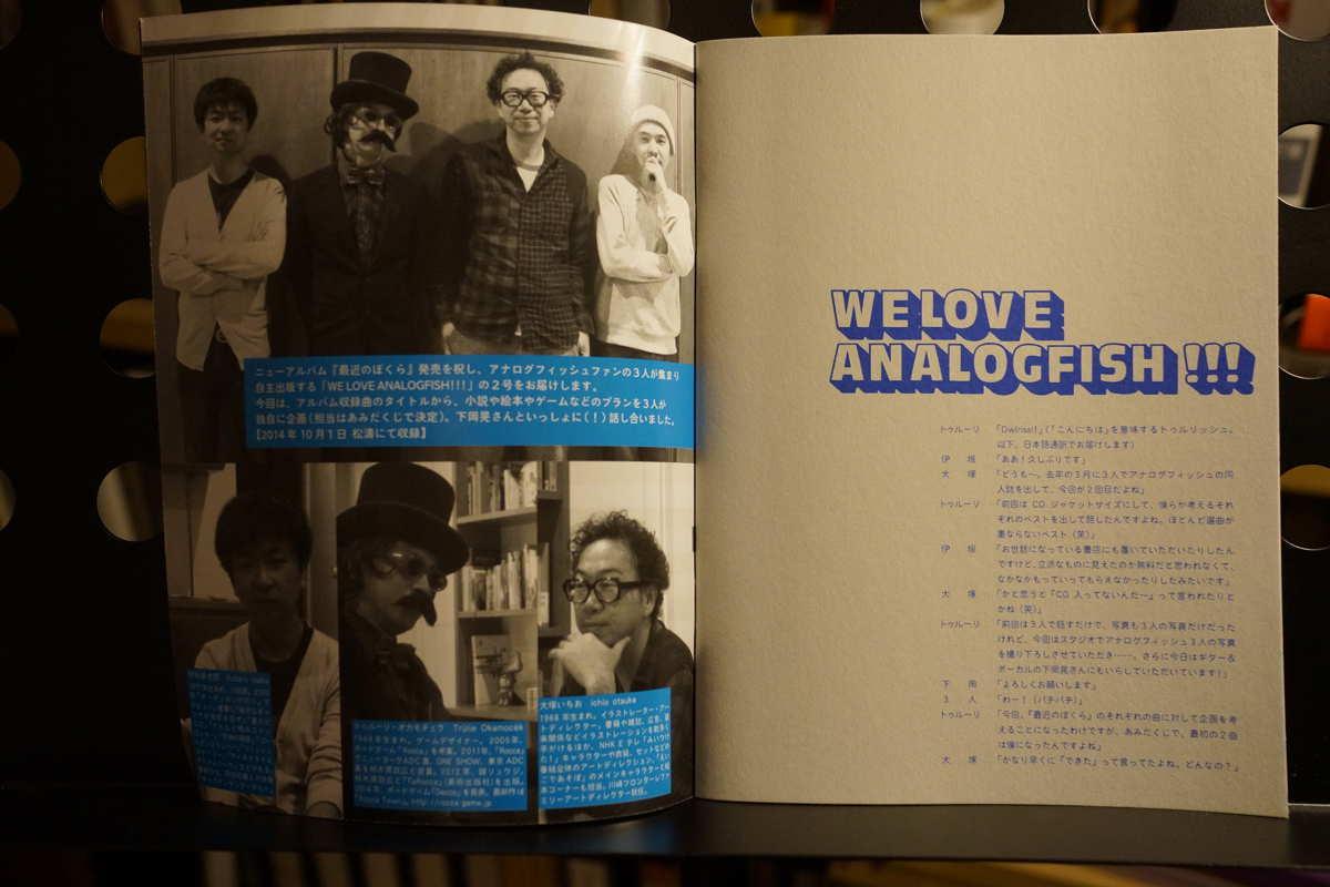 2014年、ミラノサローネで発表したボードゲーム「Decco」のプロモーションムービーに下岡晃が参加。伊坂幸太郎×大塚いちお×トゥルーリ・オカモチェクが、ファンマガジン『We Love Analogfish』Vol.1〜2を刊行。