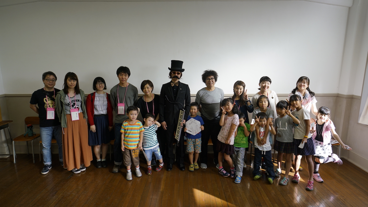 上位入賞したこどもたち&山形ビエンナーレのスタッフのみなさんと記念撮影。