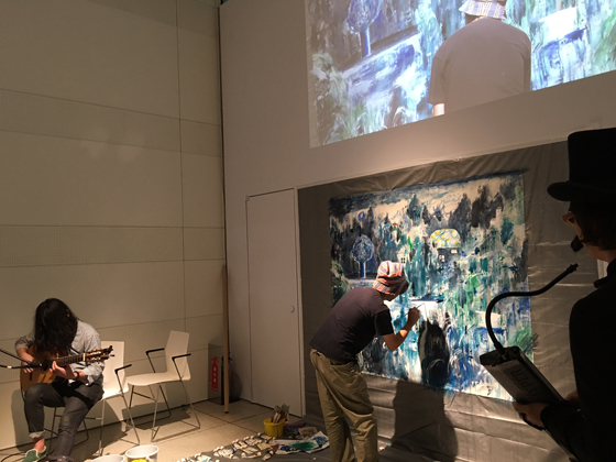最後は植田さんは筆をギターに持ち替えて、市川さんとトゥルーリさんとセッション